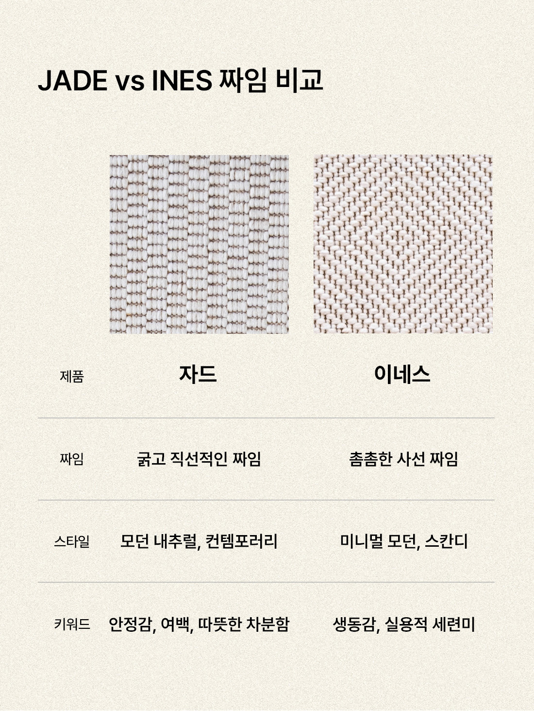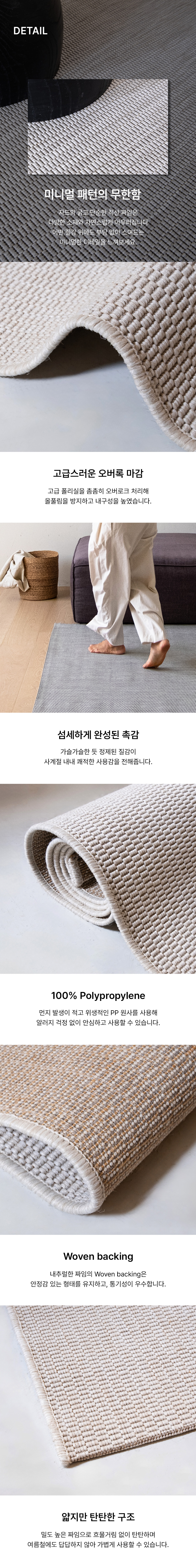 - 원단 특성상 러그 사이즈는 ±5cm의 오차 범위가 발생할 수 있습니다. 이 점 양해 부탁드리며, 구매 시 참고해 주세요.